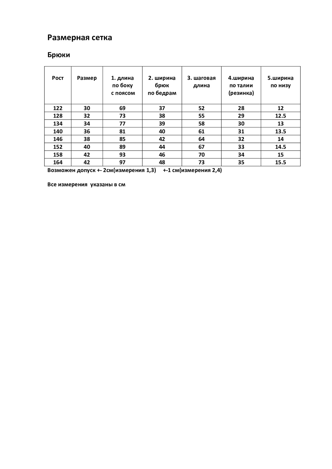 Размерный ряд. Девочки