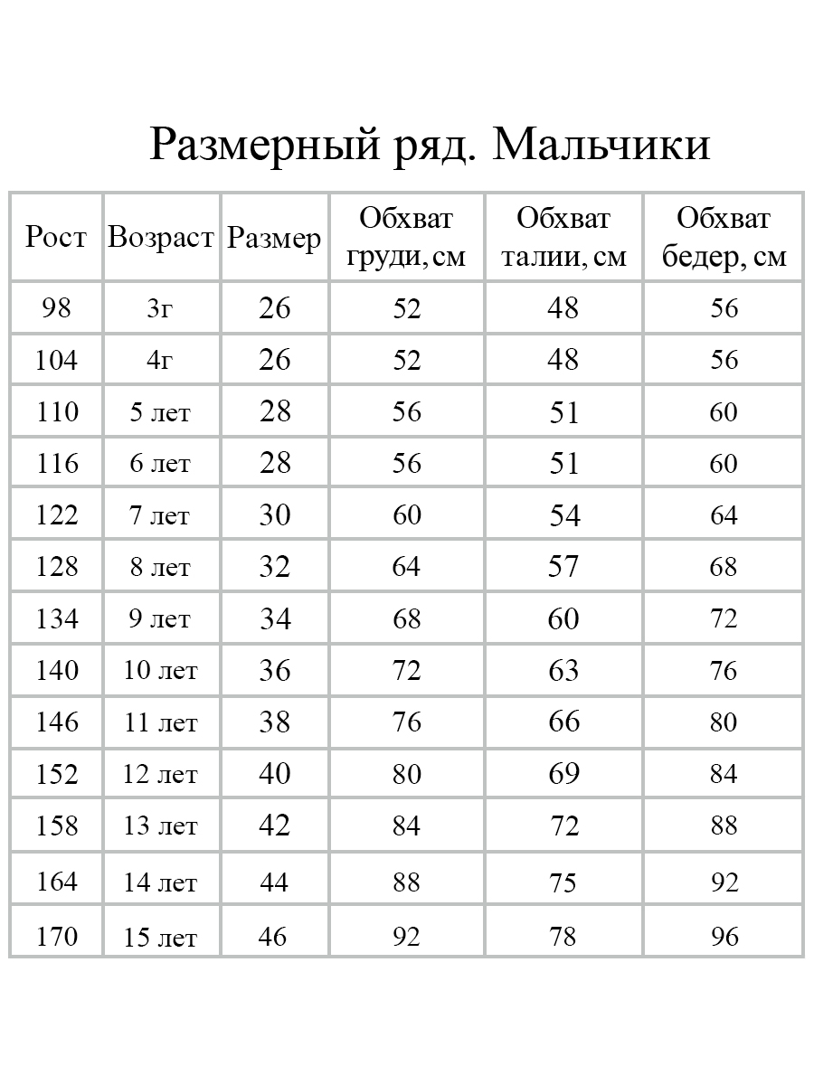 Размерный ряд. Мальчики