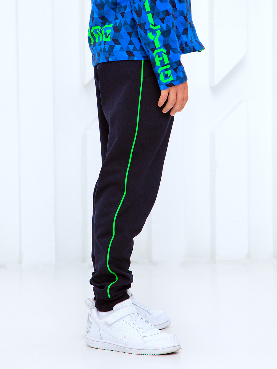 Описание: Изделие изготовлено из трикотажного полотна.Карманы в боковом срезе,а по боковому шву проложен кант.К брюкам можно подобрать бомбер или толстовку.