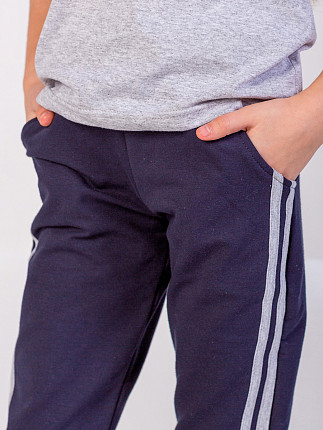 Описание: Брюки изготовлены из трикотажного высококачественного полотна.Комфортный пояс и манжеты,боковые карманы.Контрастные лампасы.Не стесняют движений.Рекомендовано на каждый день в комплекте с толстовками.