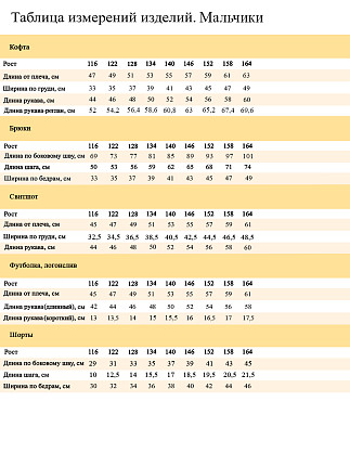 Размерный ряд. Мальчики