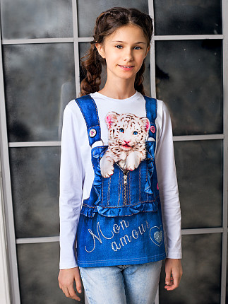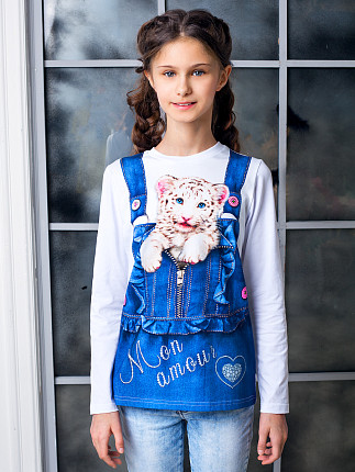 Описание: Изделие выполнено из высококачественного трикотажного полотна,с дизайнерским принтом-имитация сарафана и футболки выглядит красиво и современно.