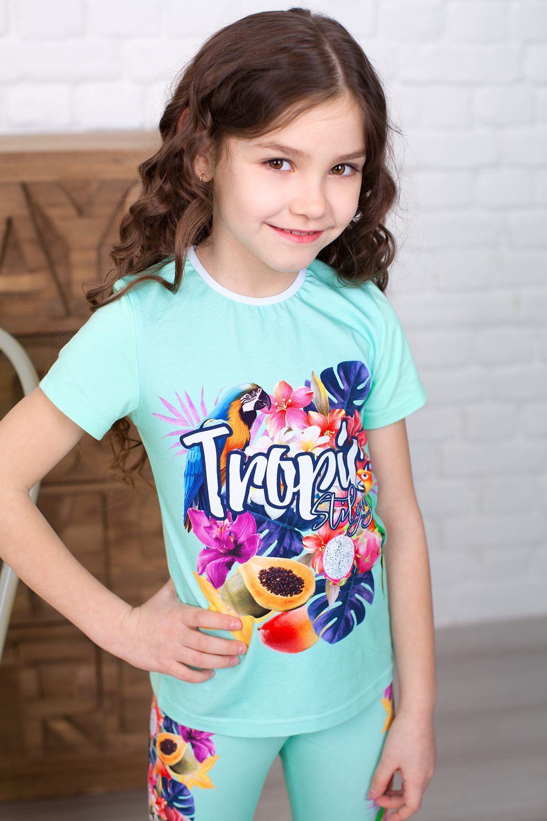 Футболка " Тропики ",ментоловый