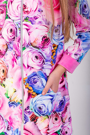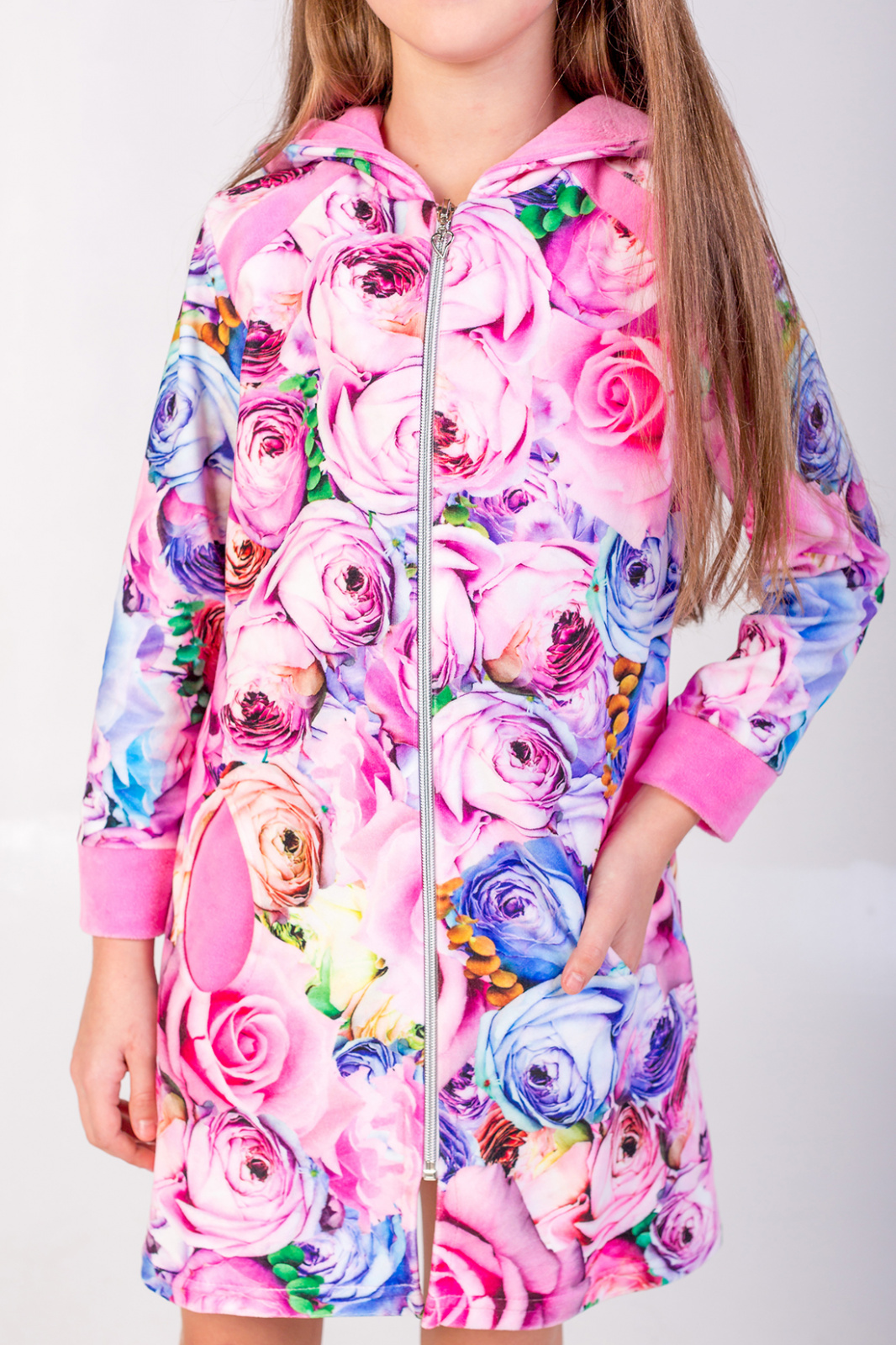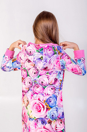 Описание: Очень теплая и нежная ткань для детского халатика.Кармашки в виде "капельки",двойной капюшон ,манжеты из отделочной ткани -все это очень эффектно смотрится на изделии.Предназначен на какждый день.