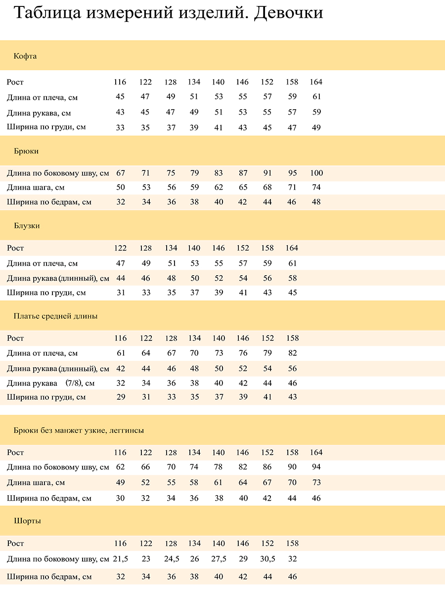 Размерный ряд. Девочки