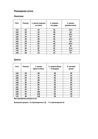 Размерный ряд. Девочки