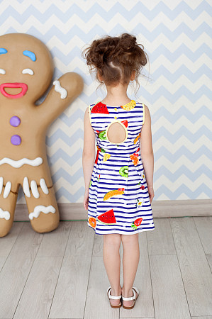 Описание: Романтичное платье для юных принцесс.Изделие изготовлено из высококачественного полотна с дизайнерским рисунком.На спинке "капелька" и застежка на пуговицы.