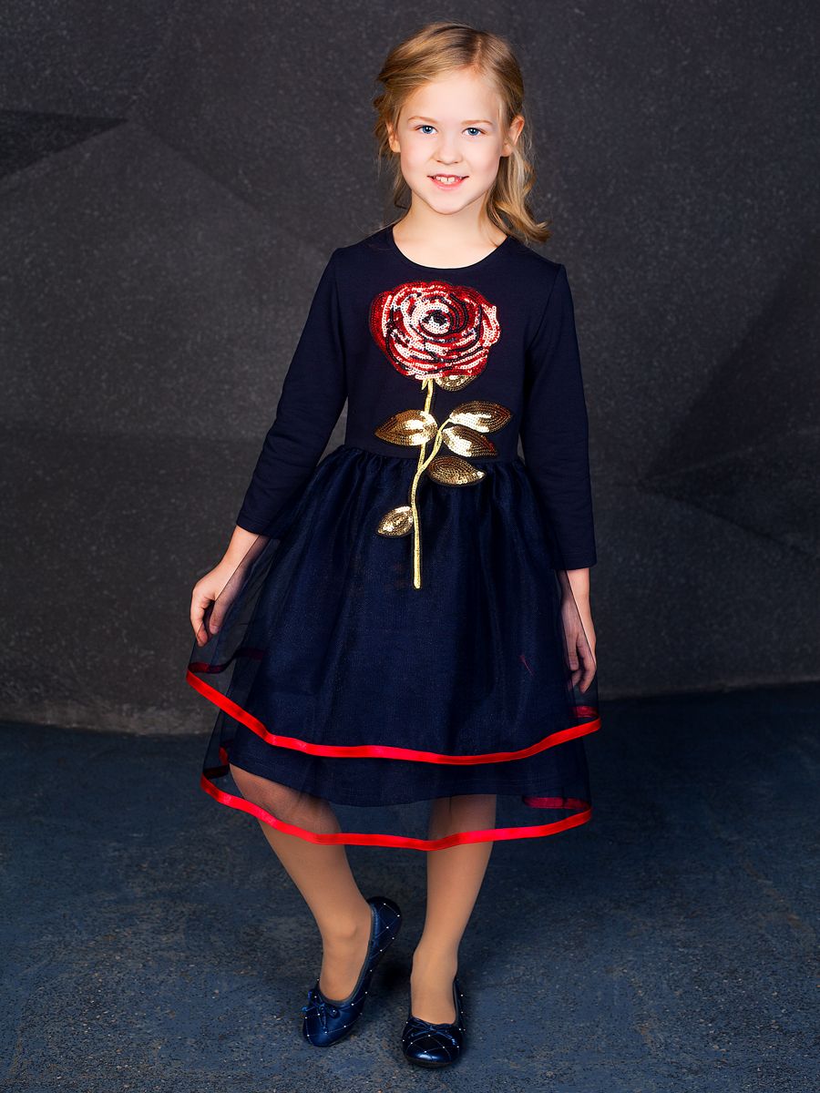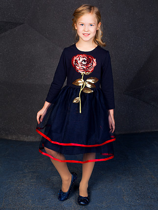 Описание: Романтичное платье для девочки ,с модной аппликацией из пайеток.Верхняя юбка выполнена из фатина.