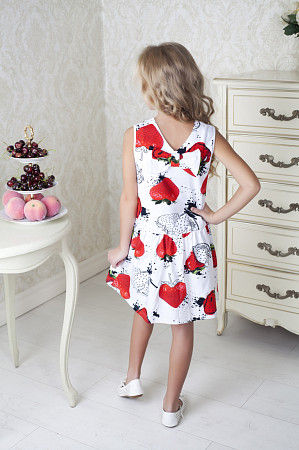Описание: Платье станет идеальным выбором для юной леди.Изделие с дизайнерским рисунком,из трикотажного высококачественного полотна,с изысканным V-вырезом на спинке и очаровательным бантом.