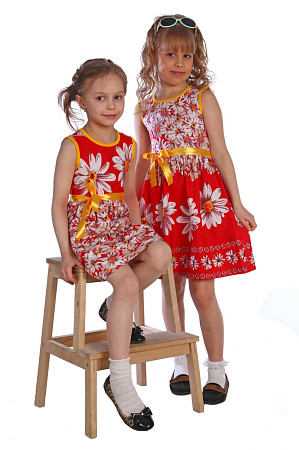 Сарафан "Кокетка", малиновый в ромашку