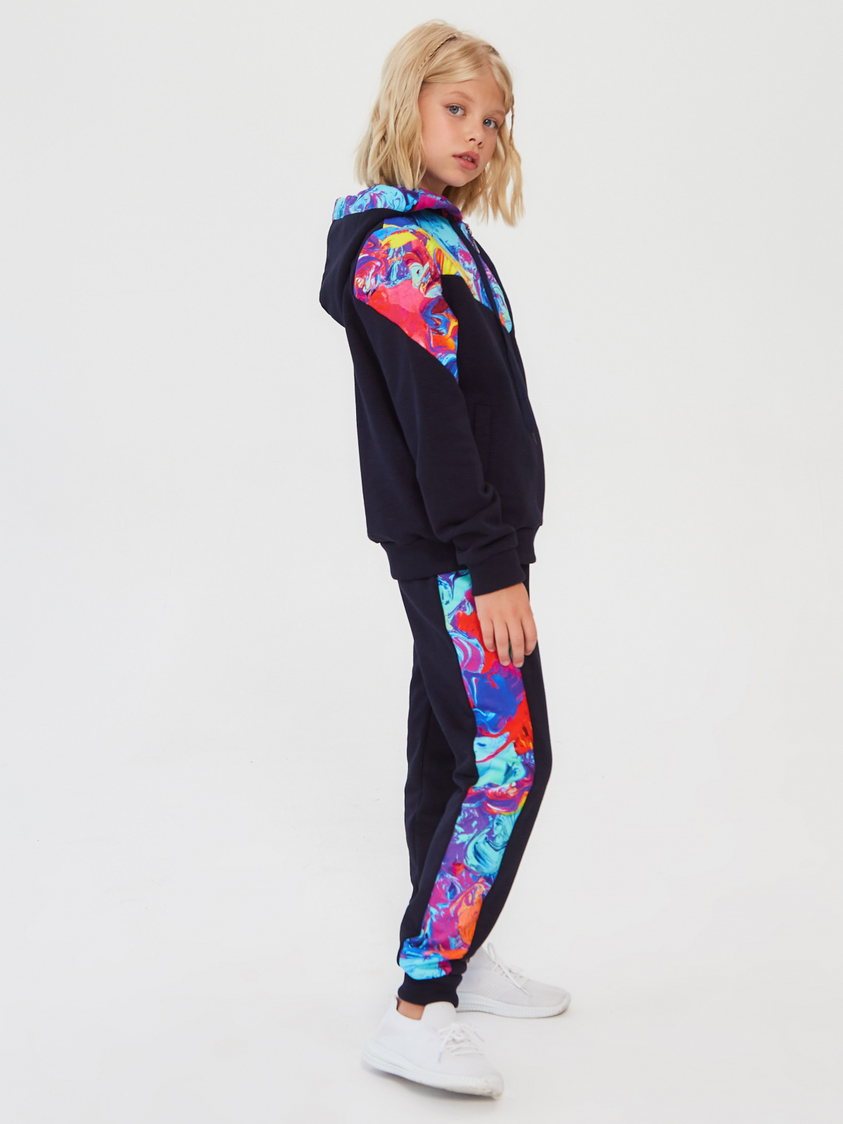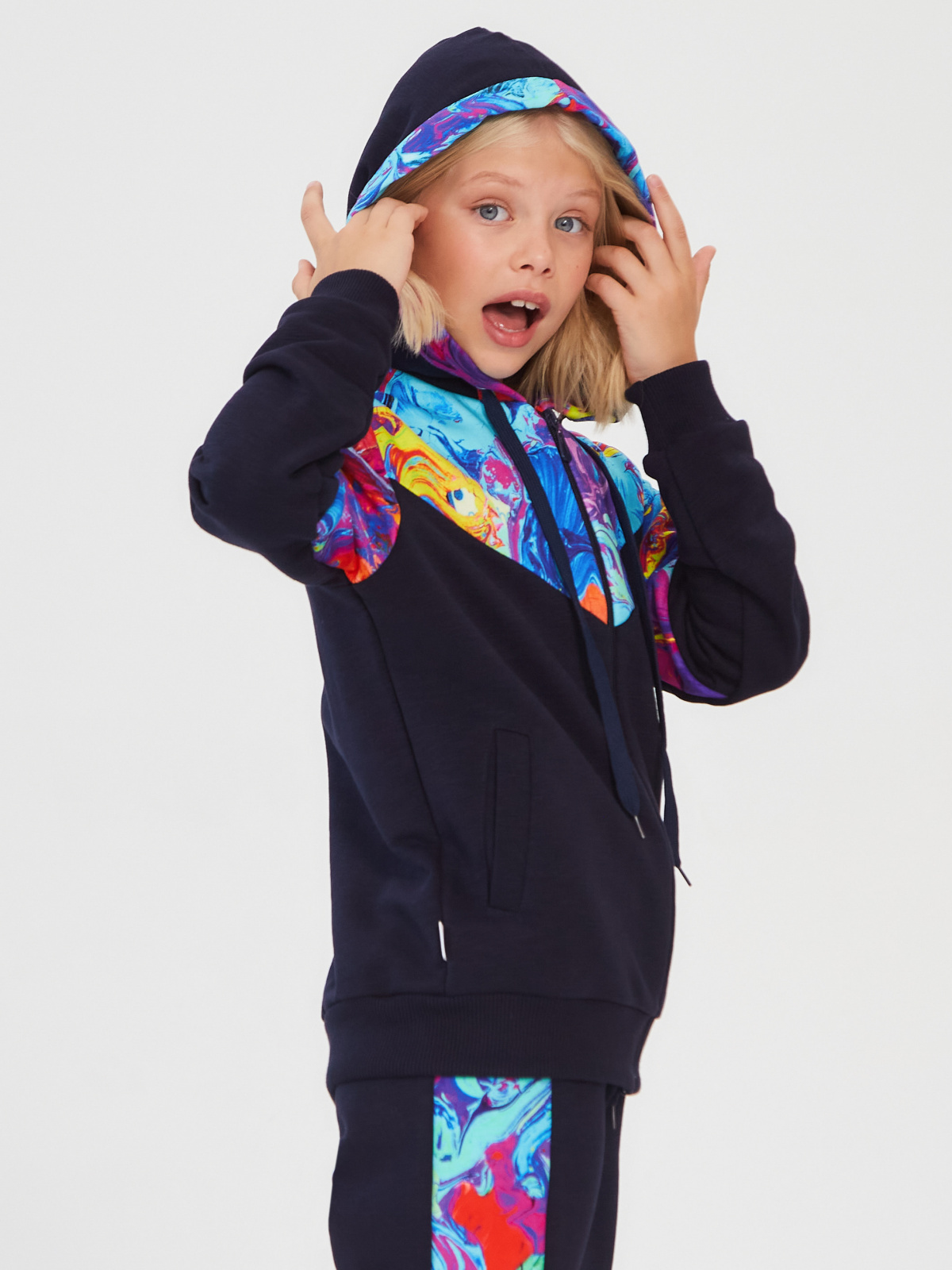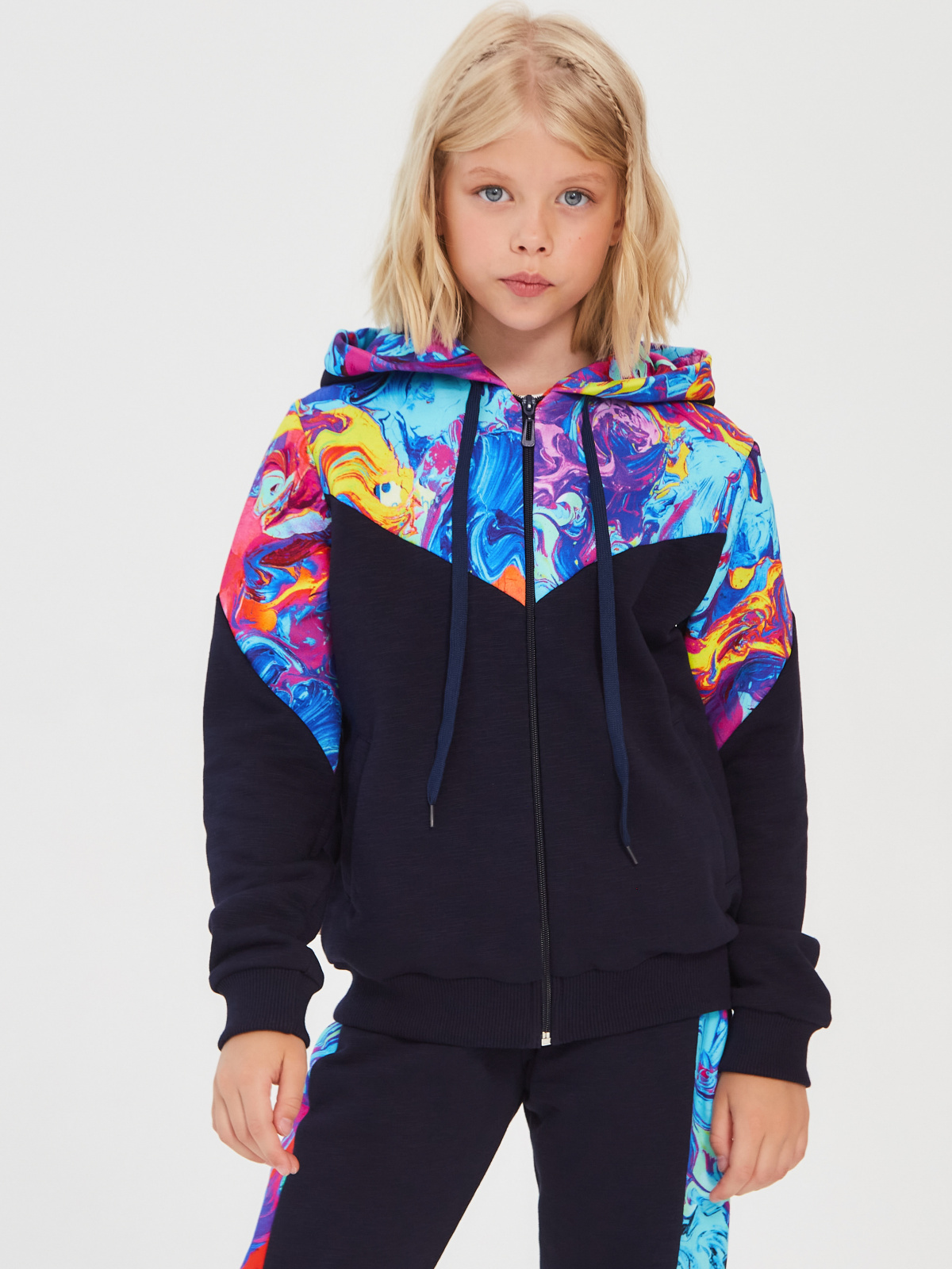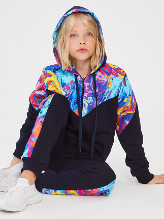 Описание: В настоящее время очень востребована спортивная и домашняя одежда для детей и подростков из футера трехнитка петля fiam.На полочке,рукавах и внутреннем капюшоне отделочная ткань-диджитал.