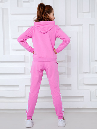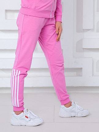 Описание: Изделие изготовлено из трикотажного полотна.Комфортный и яркий костюм создан в спортивном стиле,для активных и энергичных,Дополнением служат лампасы на брюках и куртке.
