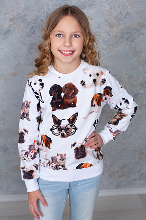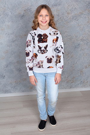 Описание: Изделие изготовлено из высококачественного трикотажного полотна с дизайнерским рисунком.Свитшот необходимая вещь в гардеробе подростка.